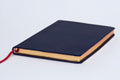 This navy blue edition is bound in natural grain highland goatskin with a small semi-yapp and blank front cover, and features red under gold page edges with a crimson red ribbon marker.