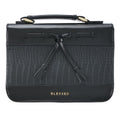 Blessed Black Croc Faux Leather Fashion Bible Cover with Tassels (6.5" x 9.25" x 1.62")