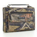 The Mossy Oak Camo Poly-Canvas Bible Cover combines super storage with the popular camo look. Stash power features include a front zippered pocket as well as a Velcro tabbed flap pouch and a handy slip pocket on the back. Inside you will find a zippered mesh pocket and pen loop. Design features include a suitcase style, reinforced carry handle and tab zipper-pulls. The sewn-on tag is screen-printed with the powerful message from 1 Corinthians 16:13.