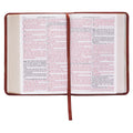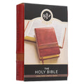 The Two-tone Brown Faux Leather Large Print Compact King James Version Bible combines easy-in-hand portability with easy-to-read text. The classic 1769 King James text is presented in a 10-point type that is considered a large type for a small Bible.