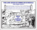 Emphasizing the rapture and the Bible admonition, "Be ye also ready." 4 panels. 2.75" x 4.25"