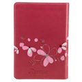This sweet pink King James Version Pocket Edition will charm women of all ages. Its cover is constructed of quality man-made material imported from Italy, with the look and feel of real leather (trade name LuxLeather). Design features include debossed cover title and motifs with silver foil accents, and silver gilt-edged pages. Inside, you'll find a helpful Scripture verse finder, reader-friendly subheadings, a double-column format, a one-year Bible reading plan and an attached ribbon page marker.